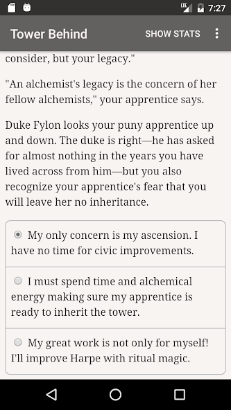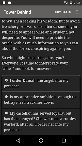 《月Tower Behind 》是凯尔·马奎斯创作的 40 万字互动史诗奇幻小说,你的选择将掌控故事的发展。它完全基于文本,没有图形或声音效果,并由您巨大的、不可阻挡的想象力推动。
